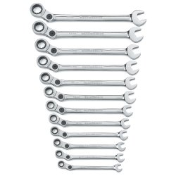 12 Piece Metric Indexing Combination Wrench Set 12 Piece Metric Indexing Combination Wrench Set?Features and Benefits: - 13 locking positions allow you to reach around obstructions to turn nuts and bolts in hard to reach places - Quickly tighten or loosen fasteners by unlocking the pivot joint and pumping the wrench with a push-pull motion - Lock the pivot joint in the straight position for the strength of a typical straight wrench - Up to 23% longer for excellent leverage and access to hard -to-reach fasteners - Stronger grip on fasteners and up to 25% more torque